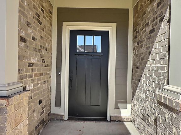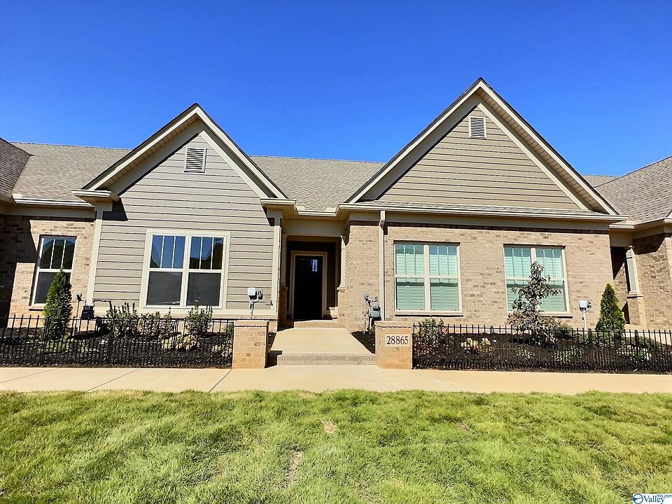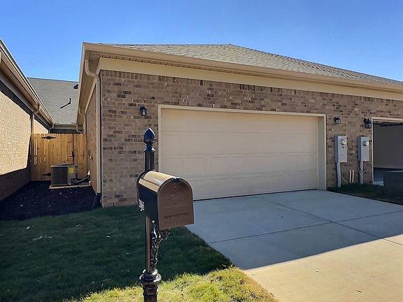 Rose Floor Plan. Brick & Hardiplank construction townhome. One level. 3 car garage. 9 ft. ceilings, rounded corners, gas fp w/ built-ins, custom built kit/bath cabinetry, under cabinet lighting, quartz countertop throughout, enlarged kit island, 5" Crown molding throughout, Hardwood throughout, Master & WIC w/ built-ins w/ pull out shelves & dresser, Secondary Beds & closets. Zero entry shower w/ transom in Master bath. Add attic storage. Freestanding sink & 5' upper cabinets in Laundry. Gas range. Shiplap in foyer, dining, & master. Built-in pantry shelving. Add Pantry Cabinet in Kit. Pavers on side porch & courtyard. Fence. Upgraded paint. Sun tunnel in kit.