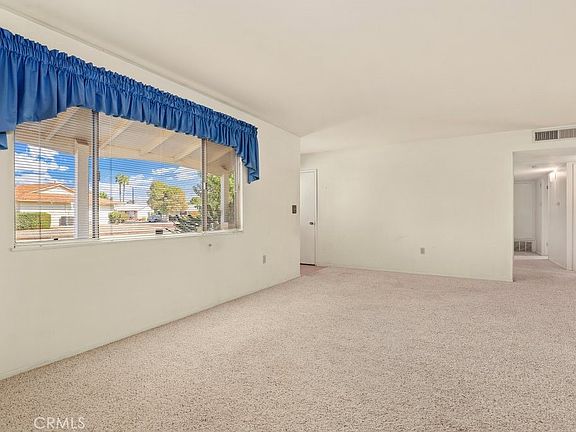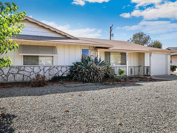 Cozy single-story home in the desirable Sun City Civic Association, 55+ community, with golf course views and features a spacious floorplan, and brand new flooring! Enter the home into the large living room which flows into the kitchen with wood cabinetry, tile countertops, and backsplash. The kitchen opens to the dining room with lots of additional built-in storage and desk. There is also an enclosed sunroom with ceiling fan and views of the backyard. Enjoy 3 generously sized bedrooms. The primary bedroom has 2 closets and a private bathroom with a shower, and there is a 2nd full-size bathroom in the hallway for the secondary bedrooms and guests to share. In addition to the sunroom there is also an open patio area and low-maintenance landscaping with wrought iron fencing with views of the golf course. This home also has a storage shed, an attached 1-car garage, and space for 2 cars in the driveway. Residents of this desirable community get to enjoy 2 swimming pools, the golf course, a clubhouse, many clubs to join, Low taxes, and Low HOA fees and conveniently located not far from shopping, dining, and the 215 Fwy!