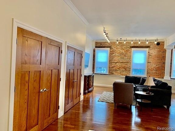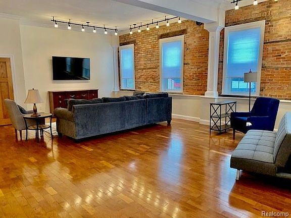 This apartment is luxury living at its very best!! Over 1,400 sq. ft that has been restored, beautifully decorated and fully furnished. There are 11.5 foot ceilings, soaring windows, exposed brick & I-beams. Upon entering the private entrance you are greeted by a beautiful sweeping staircase and lobby. The unit is open concept and features a great room/dining room and kitchen that is just perfect for entertaining. The kitchen has white cabinets and a beautiful island. There is an in-unit laundry, up-scale track lighting and more! The space is located on the second floor of a historical building overlooking beautiful downtown Flat Rock. Located across the street famous Atwater Park which offers a wide range of amenities including a river where you can stroll, kayak or simply enjoy nature. Well lit parking and entry. No smoking. No pets.