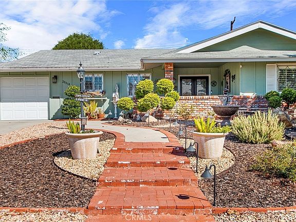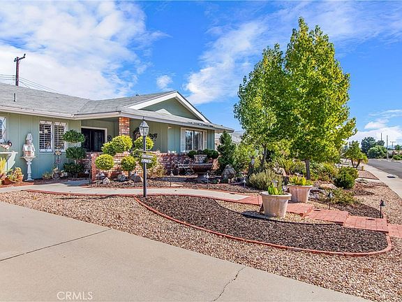 Nestled it the heart of Menifee's senior housing sector this updated, turnkey and very well cared for home is ready for it's new owner! From front to back, top to bottom, inside and out...this home screams pride of ownership!!! Entering this home you'll notice custom French entry doors that lead right into your main dining and living areas offering a semi-open layout, warm laminate flooring, tons of natural light pouring in through the newer French doors and dual pane white vinyl window, newer baseboards and recessed LED lighting. Leading off the main living area is your kitchen very well appointed with new countertops, stainless steel appliances, beautiful cabinets, large pantry and direct access to your garage and private laundry/hobby room. The spare bedroom offers an oversized footprint, plantation shutters and timeless chandelier. Both bathrooms are absolutely heavenly with a full update and character of their own. The final room in the house is your primary well appointed in size and offering a cozy view of your gardenlike backyard. Speaking of back yard this one is a greenthumb's paradise with citrus trees, multiple shaded seating areas, a potting center with sink and running water and to top if off complete privacy from all of your surrounding neighbors! It's rare to come across such a well loved home.....don't let it pass you up!