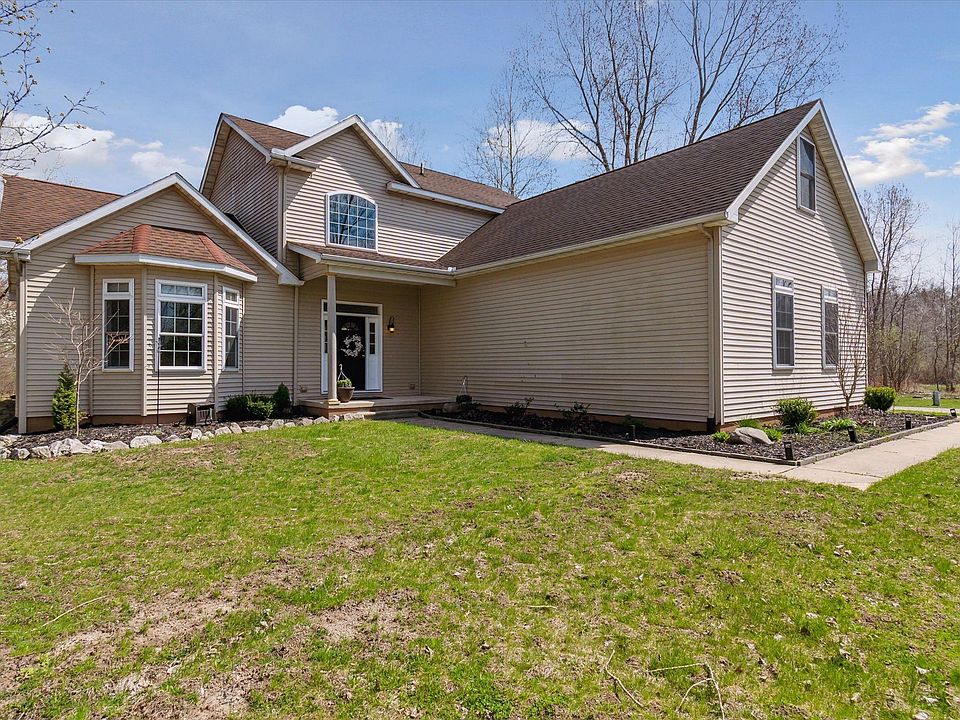 Looking for your slice of country living? Secluded contemporary home nestled back in the woods with an extra lot next to it making over 7 acres! Beautiful 4 bedroom 3 1/2 bath home. Living room and dining room overlook the sprawling, private backyard. The kitchen is open to the living room and dining room. It has double ovens, lots of cupboard and counter space. Off of the dining room is a large family room with a warm fireplace. The spacious primary ensuite is on the main floor. It has a large walk in closet and lovely, updated bath. There is also a first floor laundry and a 1/2 bath on this floor.