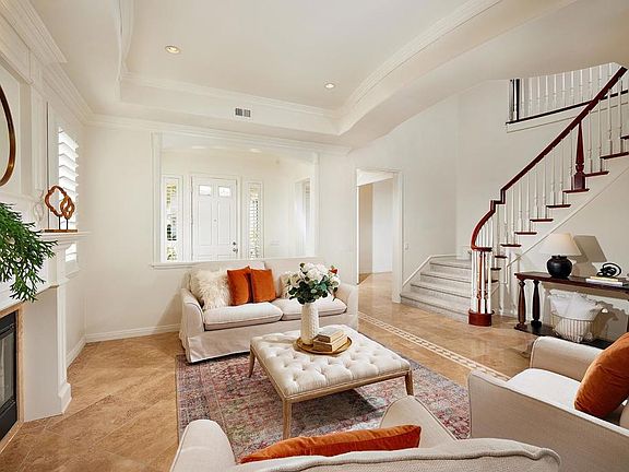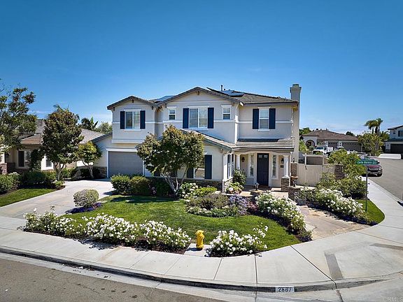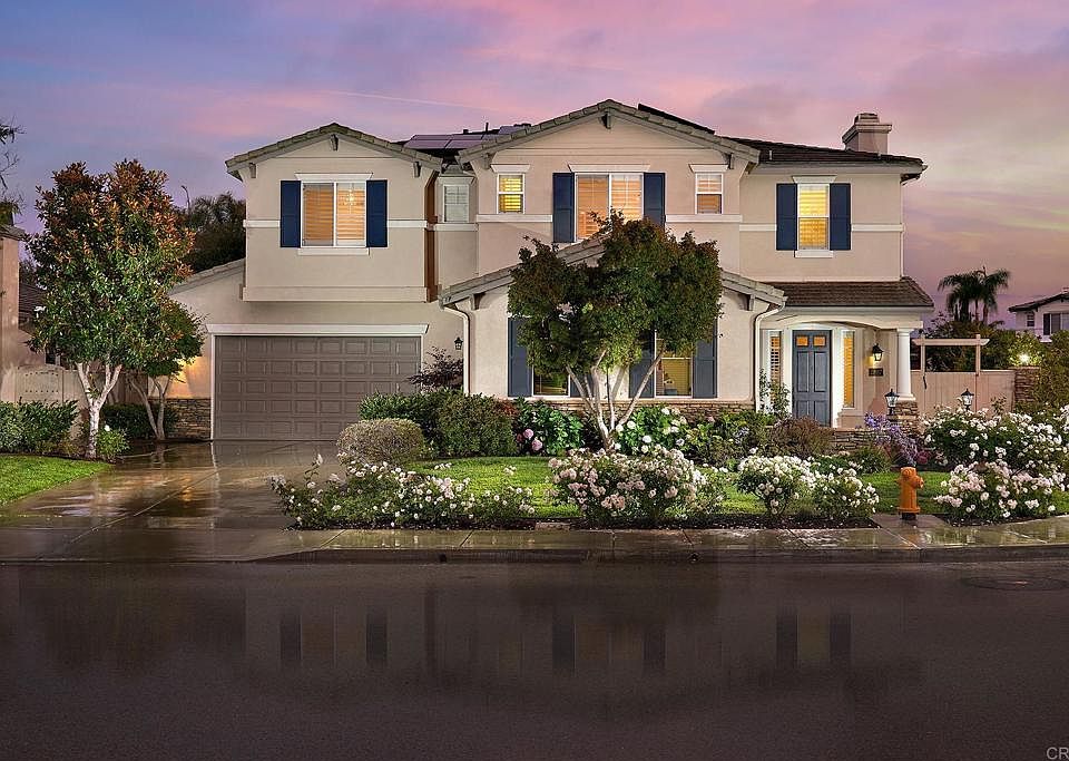 Come discover the quintessential “American Dream” home. This stunning pool home is located on a fantastic cul de sac in highly desirable La Costa Valley. The rarely available floorplan offers 6 bedrooms plus an expansive loft (perfect for a playroom or office) and 5.5 bathrooms. The home’s storybook curb appeal is highlighted by bountiful hydrangeas and white roses. Inside, you are greeted by the elegant formal living room with wonderful fireplace. The formal dining room has bi-fold doors that open onto the incredible outdoor space with sparkling pool, soothing spa, glass firepit, and putting green. The center island cook’s kitchen features granite counters, stainless steel appliances, built-in desk, and breakfast area. The kitchen flows seamlessly into the family room with built-in entertainment center and fireplace. The luxurious primary suite offers a soaking tub, dual basins, a vanity area, and huge walk in closet. Four more bedrooms, a loft, and three bathrooms complete the upstairs. A bedroom with attached bathroom is also conveniently located downstairs. Gorgeous wood and tile floors can be found throughout the home. Other features of the home include crown molding, wainscoting, plantation shutters, 3 car garage, leased solar, and dual AC. Residents enjoy The Valley Club with junior Olympic size pool, spa, wading pool, lighted tennis courts, fitness center, and clubhouse. Students attend top rated schools in the Encinitas/San Dieguito school district. Minutes to beautiful beaches, world class golfing, fantastic shopping, and delicious restaurants. Truly Southern California living at its best!