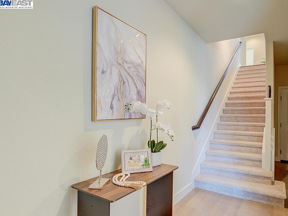Beautiful townhouse-style home located in Mission School district! The interior boasts premium laminate floors throughout the living room, kitchen, and downstairs hallway. On the first floor, there is a private guest bedroom complete with a full bath, ensuring comfort and privacy for visitors. The spacious living room is flooded with natural light, creating a bright and inviting atmosphere with unobstructed views of the hills. It features recessed lighting, dual pane windows, and a private balcony. The kitchen is light and airy, showcasing granite countertops and stainless steel appliances (including a gas stove). The large primary bedroom is a haven of natural light and includes two walk-in closets, offering ample storage space. The primary bathroom is designed with premium tile floors, a stall shower, dual sinks, and a large custom mirror. Additionally, there is a separate laundry room conveniently located on the primary bedroom floor. For parking and storage needs, the home boasts a fully finished 2-car side-by-side attached garage. With easy access to highways 680 and 580, commuting to Silicon Valley and other destinations is a breeze. Moreover, the home is in close proximity to the BART station, Safeway grocery store, Starbucks Coffee, and various restaurants! Do not miss!!