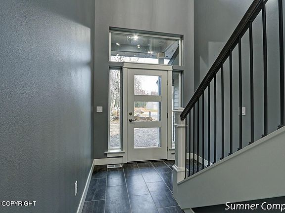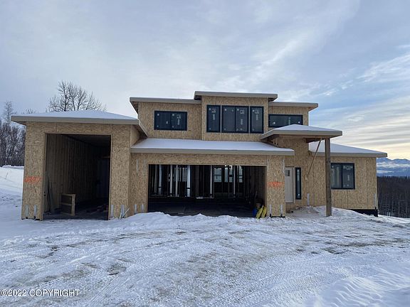 Award winning builder Sumner Co Homes presents the Sanford model with unobstructed mountain views! Some of the best views in all of Wasilla! Moving West on Parks Highway, turn Left on Clapp Street, Left on Laurie Avenue, Left on S Blaire Drive, property will be on the righ. This modern prairie style exterior creates stunning curb appeal that sets it apart. Black Fibrex Andersen windows give it aWOW factor! An open and impressive layout that features a downstairs master WIC, dual vanities, tiled shower separate tub and separate water-closet room,two story great room, open kitchen/nook with walk in pantry, downstairs laundry, mudroom and 1/2 bath. The upstairs boasts 3 more bedrooms, a hall bath and upstairs living/play room with 10' ceilings and a front-facing window wall. The oversized 3 car garage has a work-out bench area and space for toys/storage on the back wall. The separate living areas are ideal for families that always have something going on. Photos are SIMILAR. Completion in April.