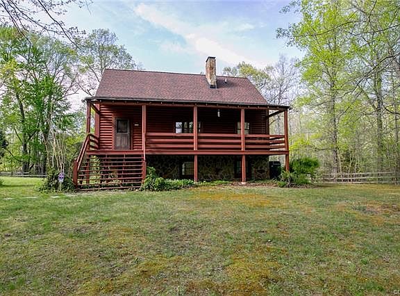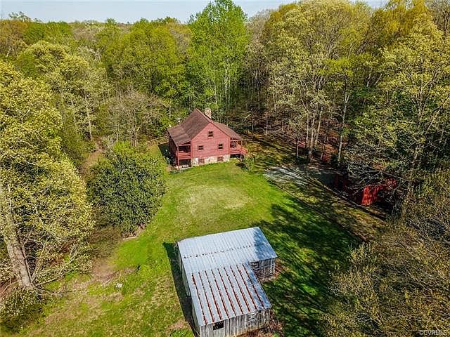 Do you want a private & bucolic surrounding but need to be close to suburbia? Well, head west from Short Pump 25 minutes & you're home to this charming log & stone cabin situated on 4.5+ acres. Rolling setting w/ the perfect mix of grassed & wooded land. Enter your open yet cozy Living Rm w/ a soaring stone FP. The Kitchen is nestled just of the Living Rm but still has an open flow perfect for entertainment. Dining Area w/ access to the full rear, covered porch overlooking a wooded ravine. First floor Master Bedroom w/ full bath. Open & spacious 2nd fl. loft area w/ adjacent bedroom. Bright, walk-out basement w/ lots of windows, a den area (w/ wood stove). Basement level bedroom just off the den w/ a full bath & sliding doors to the rear yard. Full covered porches both front & rear. Detached 1.5 car garage. Older tack barn. Graveled driveway. Great views of the neighbor's pasture and the sound of whinnies from the horses. This is such a fabulous property! It would be the perfect farmette; bring your horses & chickens! A few other perks, 5 minutes to Maidens for retail, groceries & restaurants, Wood's Store is at the end of the driveway & you're about 2m to I64.