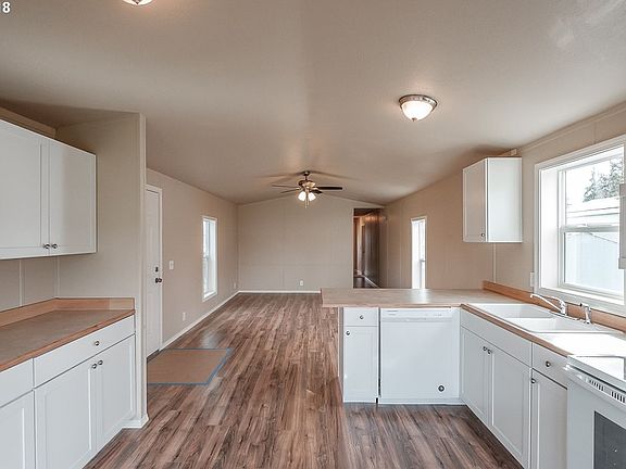 Gorgeous custom remodel just completed! Everything is brand new: custom cabinets with open kitchen concept, vinyl windows, high grade laminate flooring, upgraded carpet, new fixtures & lighting, new roof, fresh int & ext paint, vaulted ceilings, etc. Too much to list! Ample parking area, generous garden shed, view of green space, low maintenance yard, etc. Low taxes, move-in ready!