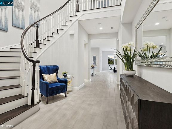 Upgraded to the MAX! No expense spared in this luxurious, tastefully upgraded home nestled in the tranquil hills of East Dublin where elegance meets functionality. Built in 2019 this home has terrific curb presence. Enter into a grand foyer w/soaring ceilings and curved staircase. The main level has an ADU with a SEPARATE ENTRANCE. Perfect for in-laws/multigenerational living or to rent, the ADU has a bed, full bath, living, dining area and kitchen. Downstairs office plus powder bath. Open floor plan with a spacious great room w/ gourmet kitchen w/ quartz counters, SS appliances, island, pantry and butler's pantry, open to multiple dining areas and family room with fireplace. Fabulous outdoor access from family room and kitchen to the California sun room and backyard. Luxurious upstairs primary suite w/retreat, walk in closet w/ organizers and spa like bath with oversized shower and soaking tub. Watch the sunset from the balcony off the primary suite. Large loft for recreational activities. 3 secondary beds with attached baths and large laundry room complete the upstairs. Enjoy outdoor fun, dreamy sunsets and views from the resort like backyard, with pool/spa, outdoor kitchen, fruit trees and more. Custom light fixtures, owned SOLAR, every amenity for premier living! OPEN Sat/SUN