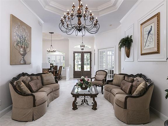This elegant and beautifully updated home is perfect for family living and entertaining. The entry opens naturally to the casually elegant formal areas. A private home office/library is convenient but nicely set apart. At the center of the home, the gourmet kitchen is a chefs dream; combining function and beauty with working island and brand new stainless steel appliances, lovely new counter tops and custom cabinetry with spacious pantry. The chefs kitchen adjoins the casual family areas featuring a gas fireplace; perfect space for entertaining family and friends. The romantic master suite is private and enjoys access to the outdoors through French doors. Finished nicely with hard wood flooring and an over sized master closet. The lovely master bath is complete with double granite vanities, walk in shower and garden tub. The outdoor areas are ideal for relaxing by the screened sparkling pool and spa, dine al fresco on the pool deck under the covered lanai.