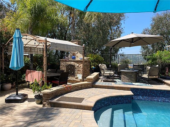 A MUST SEE! Experience Luxury Living in this Amazing Spanish style Estate! The exquisite two-level house features a resort-like backyard with a brilliant and newly refinished private pool & spa with beautiful light blue pebble tec, bull nose coping and blue light in the pool, back patio area with new Tuscan pavers, romantic outdoor fireplace, built-in BBQ and seating area deck surrounded by beautiful greenbelt creating a private oasis for relaxing and entertainment is located within the gated community of Rancho San Juan Estates, and it’s nestled on a quiet hilltop cul-de-sac offering expansive views, designer finishes and inviting spaces to adore. The property entry is complete with natural limestone flooring and an abundance of natural light. A well-appointed chef’s kitchen with island, custom cabinetry, granite counter tops, cast iron AGA stove, two dishwashers, and an open floor plan to the family room ready for family gatherings while the grand living and dining rooms provide a formal setting with double sided fireplace, views to the gorgeous pool & spa and access to the backyard. This 4-bedroom property includes a main floor ensuite bedroom currently used as an office with doors to the backyard. Ascend upstairs to discover French doors that lead into the large primary suite with vaulted ceilings, walk-in closets, lovely fireplace with retreat area, balcony, master bath with jetted tub, and heated bathroom floors. The two secondary bedrooms share a full bathroom with dual vanity and heated floors. Plantation shutters are present throughout the house. Enjoy a three-car garage with a long driveway and a gated & covered front door entry. This spectacular property is located just minutes to the quaint and renovated downtown San Juan Capistrano with great restaurants, bars, local businesses, Amtrak train stop and the Mission. You are within walking distance to the prestigious St. Margaret's school, public elementary school, and close to the award-winning San Juan Hills High. You are steps from the stables, bike/horse trails, some that lead to Doheny Beach and minutes away from Marbella Country Club, San Juan Hills Golf Club, world class beaches and Dana Point Harbor. San Juan Capistrano is ideally located in South Orange County with easy access to the 5 freeway, 73 Toll Road, and John Wayne Airport. This is truly an incredible place to call home! Come Visit!