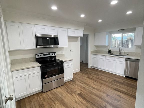 Beautifully remodeled home in a Great 55+ retirement community with all of the amenities of a resort! located in Sun City Civic Association. This 3 bed, 2 bath home has a New Roof, NEW HVAC system, Kitchen and bathrooms, new paint inside and out...Plus Luxury Vinyl Plank through out for a soft walk and easy clean. This spacious layout offers an attached garage with direct access and a bonus room. All New Kitchen and Appliances with pantry. New Bathroom with efficient fixtures, Lots of windows allowing for a bright and airy home. Located in a quiet and beautiful neighborhood HOA amenities include pools, Pickleball courts, clubhouse, card rooms, amphitheater, shuffleboard, horseshoe pits, and more with a variety of clubs and endless amounts of social activities. low yearly dues. *** HOA is paid for the first year***New indoor outdoor carpet on back patio is coming in Now***