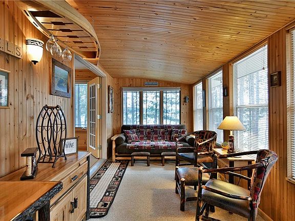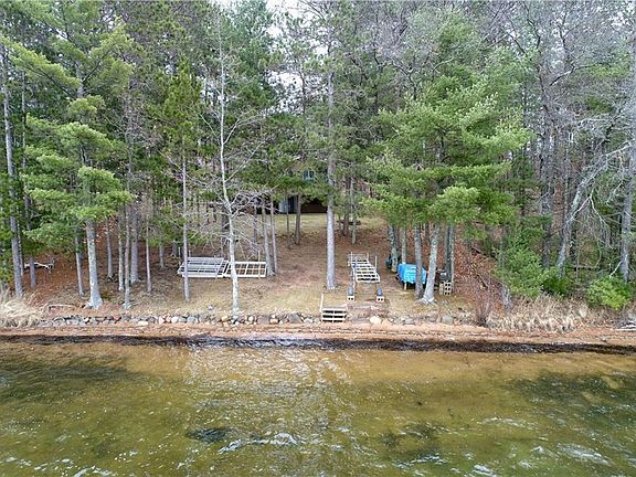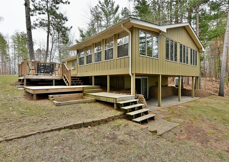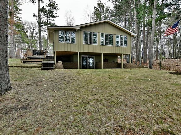 Clear water, sandy beach, moderate elevation and a Northwoods style cabin on the eastern shores of Rooney Lake. The immaculate 3BR/1.5 Ba cabin has been lovingly cared for by the same owner's for the past 35 years and features an open concept floor plan with great light, warm and inviting sunroom, spacious bedrooms, gas fieldstone fireplace and large kitchen island. The lower level walkout offers laundry & ample storage for lake toys. The cabin is nestled in a private setting on a dead end road w/ 2.17 acres, 75 ft. of swimmable shoreline, towering pines, and western exposure to enjoy gorgeous sunsets. Plenty of options for outdoor entertaining to choose from w/ a deck, paver patio, large lakeside yard for games and two fire pit locations. Driveway offers great parking space w/ new gravel & would require limited site prep for a garage. 8x12 storage shed included. Located in the heart of Burnett Co. with endless recreational opportunities, great dining options and 20 min NW of Spooner.