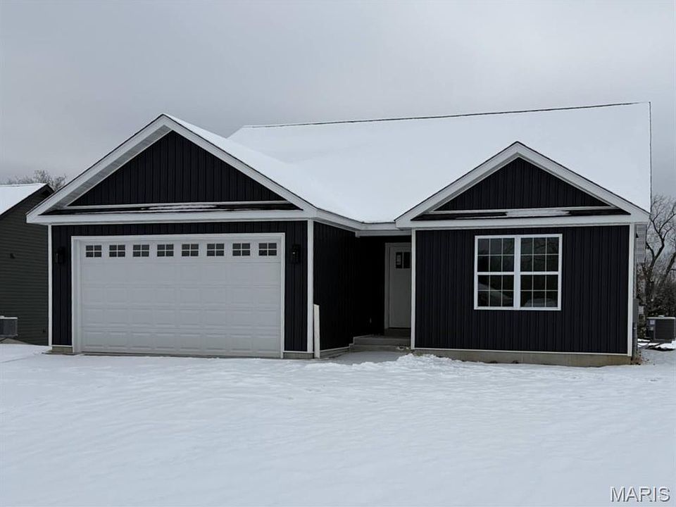 This new construction home offers a bright, open layout with upgraded lighting, canned lighting, and granite countertops, and island in the kitchen. A sliding glass door leads from the dining area to the deck, creating an easy flow for everyday living. The primary suite features a walk-in closet, private bath with walk-in shower, double sinks, and a separate toilet area. Two additional bedrooms and a full hall bath complete the main level. The walk-out basement includes a rough-in bath and provides excellent potential for future finish. Additional features include panel doors, black hardware, a hall closet, and an insulated garage door. A solid new build in a peaceful location.