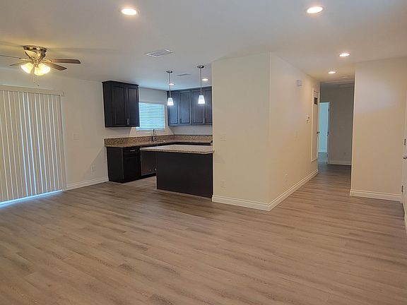 Welcome to this completely renovated single story in a 55+ community! This home is move in ready and opens up to a spacious great room perfect for a living and dining area. Beautiful kitchen area with brand new cabinets, quartz countertop and appliances. The slider door opens up to a big, low maintenance fenced backyard. Laundry room is conveniently located on the left side right as you walk out of the slider door and onto the covered patio. On the right side of the front door is where the bedrooms and bathrooms are. There are 2 closets along the hallway to store your items. One of the bedroom has a bathroom attached and the other bedroom can use the hallway bathroom. All the bathroom fixtures and vanities are brand new and tastefully designed. Ceiling fans are installed on both the bedrooms and the living room. There is a single car garage attached to the house with a door leading to the backyard. Conveniently located near shopping centers and restaurants, close to the 215 FWY and 15 FWY. This is an age-restricted community. Must be age 55 and older. No smoking. No pets. All utilities to be transferred to the tenant's name. Previous tenants left their brand new (4 months old) refrigerator, washer, dryer and microwave with the neighbor across and they can sell it to the new tenant.