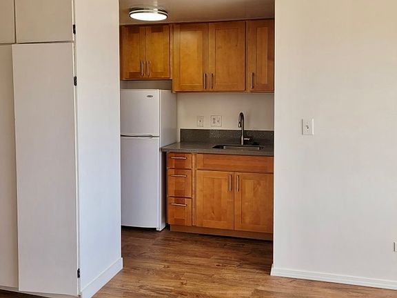 Available October 20, 2025; an open Studio with 1 bath and 1 assigned covered parking! Unit includes, window AC unit, range with oven & hood, refrigerator and ample storage!