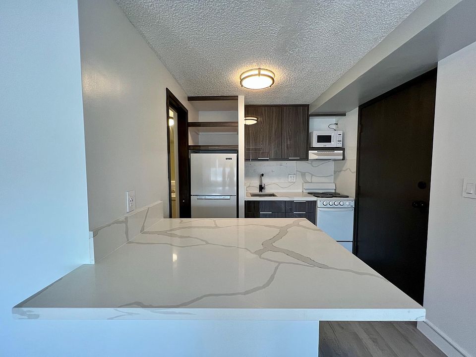 A Secured Building located in Five Regents in the Salt Lake/Moanalua Area. A newly renovated studio unit with two covered parking stalls (tandem). Offering amazing City and Mountain Views with upgrades that include: Fresh Paint, new luxury vinyl flooring, and new kitchen/bathroom cabinets and countertops. Kitchen features a unique and spacious Island/table counter top area. Building amenities include: security, pool, sauna, tennis/basketball court and meeting rooms. Conveniently located near public transportation, shopping, the airport, military bases, and easy access to East & West bound freeways. Non-Smoking, No Pets, 1 year lease. Tenant pays for electric and internet. Sorry, No Section 8. Good credit and renter's insurance required.
