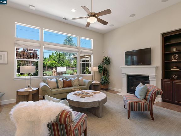 Built in 2015, this elegant single level Northgate home on an immaculate court has been meticulously maintained and improved, featuring 10 foot ceilings which allow natural light to fill the rooms. Bonus rooms include the impressive library with custom floor to ceiling shelves to display books or collectables and a media room to enjoy your favorite TV shows, movies or music. The chef's kitchen boasts island seating plus a casual dining nook, granite countertops, custom cabinetry and a walk in pantry. The spacious primary suite includes a fireplace and ample sitting area, ideal for exercise or perhaps a second office. The 3 car garage is a showcase for the owner with epoxy-like floors, improved cabinets and storage areas. All five of the bedrooms are either ensuite with full bathroom or shared. Enjoy the enchanting backyard, an entertainer's haven, with outdoor kitchen, fireplace, bocce ball court, planter bed, spacious side yard and mature landscaping. Close to shopping at the new Whole Foods & Safeway. Open Sat & Sun 5/20 & 5/21 1-4