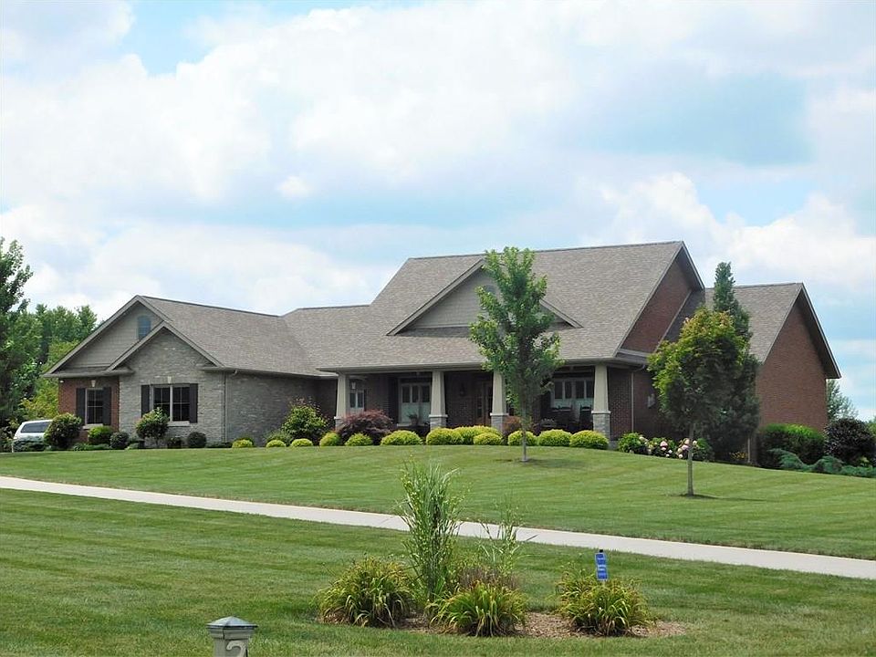 Stunning! Custom Brick/stone 4 bed-6 bath on over 5 acres. Stamped concrete sidewalk & porch. Tiled entry w/custom FR door w/lead glass!Library w/pocket doors,book shelves & gas log FR. Formal Dining w/tray ceiling & Cr Molding. Chefs dream kitchen-All Upgraded appliances remain,Haan stone counters,walk-in pantry,&le custom cabinetry. Tiled sunroom. Master suite w/walk-in shower, Dbl vanity, LG walk-in custom closet. Walk-out basement offers 2nd kitchen w/upgraded appl. & pantry, Tiled flooring, Gas log FP in great room, bed w/private bath, office w/built-in bookshelves, exercise rm, movie Theater rm, 1/2 bath. Surround sound system thru-out, Anderson windows w/plantation shutters, ADT security system. 3 car attached finished garage.
