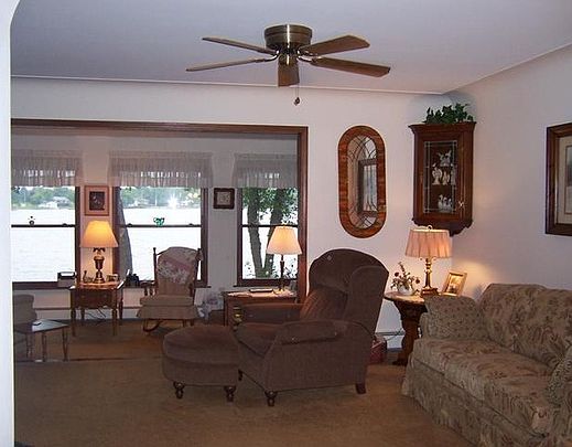 Immaculate exceptionally maintained! Multi-level livingroom. Natural sandstone fireplace/marble hearth wood burning insert. Gorgeous views of the lake. 2 covered porches. Large family room in LL. Beautifully landscaped concrete drive. 3rd bedroom has no egress window.