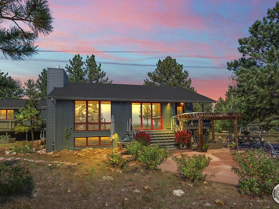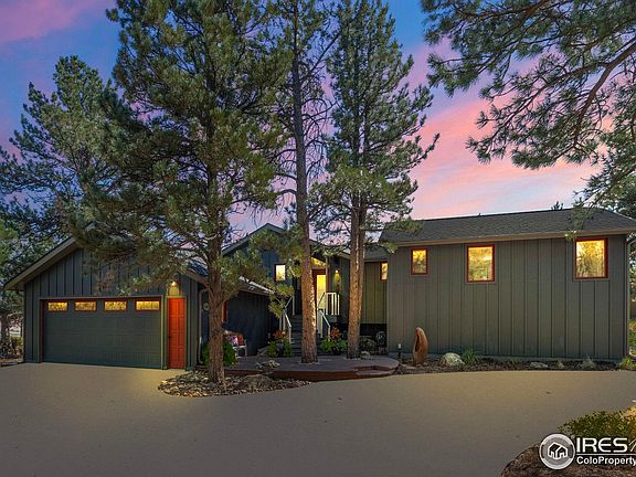 Situated in the sought-after Lake of the Pines neighborhood, this stunning 3-br/3-ba home offers peaceful living on 1.15 serene acres, just 7 minutes from Boulder. With sweeping views of the Flatirons & Front Range, this property perfectly balances tranquility & convenience. Completely renovated in 2016, the home boasts extensive exterior upgrades, including a brand-new roof, newer electrical system, a durable cementitious finish, & wool-wrapped insulation for enhanced energy efficiency. The fully renovated kitchen features unique, high-end concrete countertops & private S facing covered porch to appreciate Colorado sunrises & sunsets with an additional flagstone patio an pergola. The main-level also features a luxurious primary bedroom ensuite w/ private deck and hot tub, complete with a spacious walk-in closet & fully updated spa-like bath complete with a rain shower. As you walk through the home, you'll discover tasteful accents such as beetle kill wood, that infuse a touch of rustic Colorado charm into the modern design. Venture downstairs to find two bedrooms, a spacious great room, perfect for relaxing or entertaining, a sophisticated home office, storage with workbench. The lower level has been excavated to include a garden-level walk-out that opens to a beautiful stone patio and raised garden bed. A newly installed drip system supports the surrounding landscape. Inside, the open-plan main level is bathed in natural light, w/vaulted, beamed 12 ft ceilings and enclosed in triple-pane Alpen windows offering stunning views. Lake of the Pines is a prestigious gated community offering exceptional recreational amenities, including hiking trails & kayaking on the serene Lake , all within the neighborhood. With breathtaking views, luxurious upgrades, and exquisite finishes throughout, this home is truly a gem nestled in Boulder's foothills.