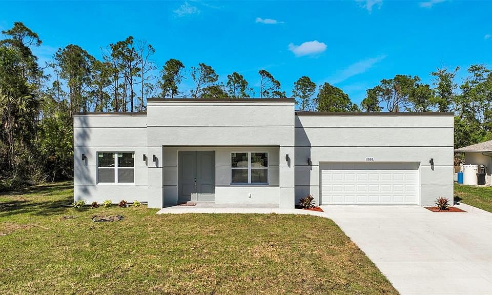Great Offer!! Stunning 2023 home ready Ready to move in. Featuring : Block concrete walls, Metal roof, Modern design with no roof overhang for wind protection, Impact windows, Impact exterior doors, Impact sliding doors, Impact garage door, 10 foot ceilings, 8 foot doors interior and exterior, LED lights, Remote multi color chandelier and porch ceiling fans, 2,5 cars garage with extended driveway, Quartz countertops, Kitchen Pantry, Stainless steel appliances with double door fridge water and ice disposal on door, Garbage disposal, Modern heavy duty doors hardware, Inside big laundry room with washer/dryer and sink, bathrooms tile up to ceiling, 5 1/4'' baseboard, ceramic tile floors, Access to back porch from kitchen, master bedroom and 3rd bedroom, master closet reinforced can be used as safe/panic room, NO flood zone, property was NOT affected by storm Ian. Come to see the details of this one of a kind masterpiece, listed under market value per sqf. Inspection report available.