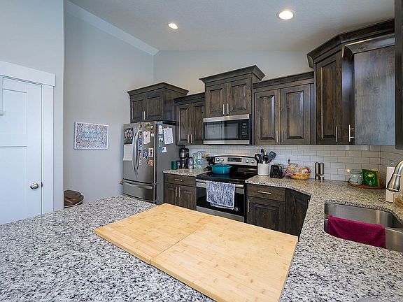This is a spectacular tri-level conveniently located near shopping and quick access to I15. Basement was finished over the past 30 days complete with a new marble shower. Upgraded kitchen cabinets, knobs & pulls, soft close doors & drawers and granite countertops throughout. Tile bath floors, laminate kitchen flooring & 2-tone paint. Mstr. bath w/walk in closet.