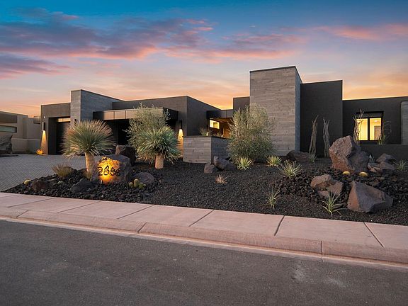 With sweeping views and detailed attention to architecture and design, this home is sure to impress! Built by Shakespeare Dev. Group and designed by McQuay architects, no upgrade was overlooked in this sprawling 4,743 sq/ft home. Complete with Wolf/SubZero appliances, the gourmet kitchen is a chefs delight. The open living room and 10 foot sliding glass doors that extend out to the patio make entertaining a dream. A custom in-ground swimming pool with electronic cover make the St. George summers a delight. Entrada @ Snow Canyon Country Club is St. George's premier gated community. From the professionally designed 18 hole golf course, to the competitive pickle-ball club, Entrada offers the perfect lifestyle while capturing the best views in all of Southern Utah.