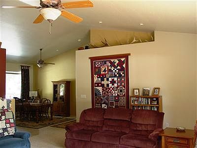 This cozy home is located on a heavily treed lot and boasts 1700 sq. ft. The offers three bedrooms and two bathrooms. The living room has vaulted ceilings with a gas fireplace.