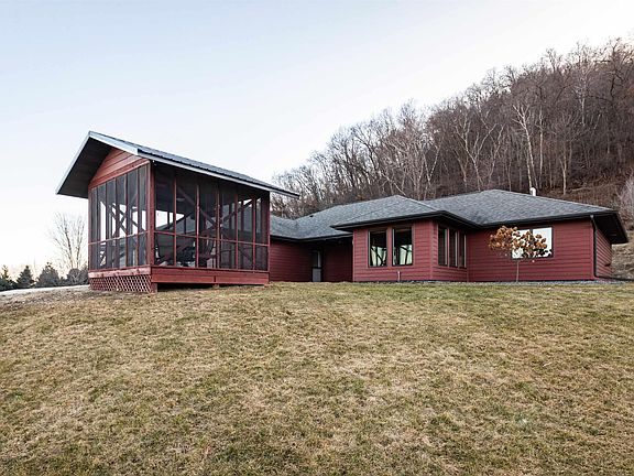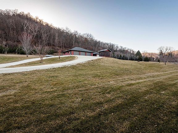 Breathtaking property overlooking the Mississippi River Valley in the Driftless Region, just outside of New Albin in NE Iowa! 3 bedroom one level home with 2 baths, fireplace, heated floors, walk-in pantry, sunroom, gazebo, new boiler, 3 car garage, AND pole building, RV/storage shed, garden shed, all on 25.96 acres! Take your side by side on the trails or just hike and take in the beauty of the bluff and watch the eagles and wildlife. The most stunning views just above the house for a firepit area. Located on this property is an artesian fed pond too! A property like this is rare! All of this is in the heart of everything recreation, like fishing, snowmobiling, hunting, hiking, and just enjoying nature. Please see supplement for so much more information.