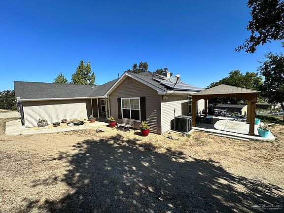 A Dream Come True!Imagine a lovely 4 bedroom, 2 bath, 1782 sq. ft. home nestled in oak trees at the end of a cul-de-sac on .84 acres (home is on .49 ac. and adjacent lot (.35 ac) is included in the price)!Now add an attached 2 car garage, large storage shed and a 1,500 sq. ft. (30 X 50) detached garage/workshop! Still Dreaming?Lets talk about the home! Dreaming of an open split-wing floor plan with vinyl plank flooring in the living room, dining area and kitchen, granite kitchen countertops and walk in pantry? What about tankless water heater-3 years old, new forced air unit-2 years old and a 1 year old AC unit? Lets add a large laundry room with wonderful deep sink & loads of cabinets. Still dreaming?Lets go outside and enjoy the great views from the gazebo covered back patio and in the front enjoy the additional lot for wildlife watching or just extra elbow room! Rain gutters are a plus as are the raised markers for septic lid location, additional the dirt driveway to the detached garage/workshop for easy access. Enjoy low power bills from the leased solar panels. (Buyer to assume solar lease).Time to stop dreaming and come take a look!