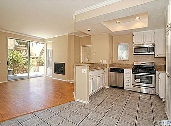 Absolutely beautiful and in move in ready condition! This is a stunning home that you will have to have! This beautiful condo is being remodeled as we speak with gorgeous tile flooring throughout that looks like light wood flooring, large baseboards for a custom look, brand new kitchen cabinets and granite counter tops not to mention it has lovely custom paint throughout and stainless appliances. Both the bathroom have updated with granite counter tops and framed mirrors. !!! Lower end unit with a large patio with custom hardscape with a brick boarder design and a newer block wall. ! Light, bright and airy! Washer/Dryer area is located inside the unit. One car attached garage with direct access! Award winning schools, Portola Elementary, Serrano Middle School and El Toro High School. Beautiful Park with work out stations within walking distance. Better act fast on this beauty! This home would be perfect for a first time home buyer or a great investment property as a rental. These are old photos new ones will be added when the remodeling is done. The remodel is just about done!!