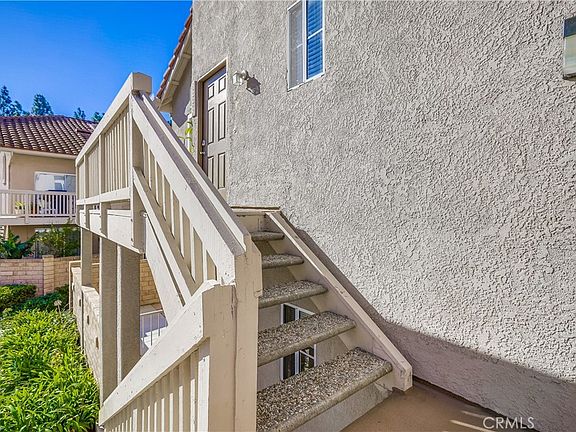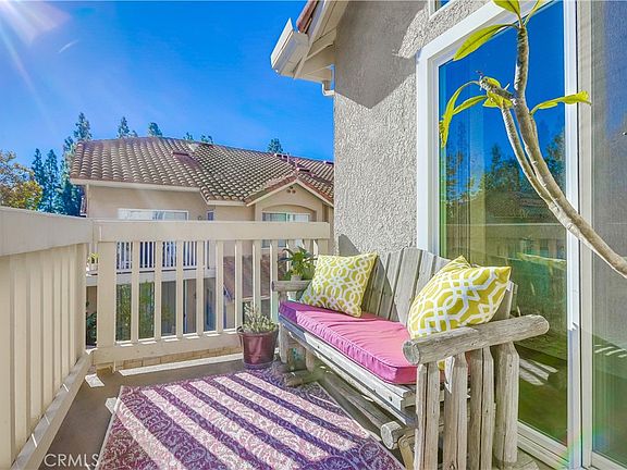 Gorgeous carriage end unit located in the desirable Canyon View West community nestled up to the foothills of Santiago Peak at the entrance of iconic Modjeska Canyon and Santiago Canyon, surrounded by the picturesque rolling hills of Whiting Ranch, providing a beautifully serene wildlife setting. The sunny front balcony entrance looking out towards the gorgeous hillsides creates an awesome first impression. Step inside and soak in the light filled living space with soaring vaulted ceilings and an open concept floor plan. The living room is filled with natural light and is blessed with a cozy fireplace and direct access to the front balcony through sliding doors, creating an ideal indoor-outdoor living space with scenic views. The handsome kitchen has been beautifully updated with exquisite cabinetry, granite countertops, a full glass tile backsplash, recessed lighting, updated faucet and fixtures, Stainless Steel appliances, extra storage cabinets with a coffee bar, and a highly prized breakfast bar, all open to the living room and dining room, perfect for entertaining friends and family. This well-designed floor plan includes 2 bedrooms and 2 bathrooms on the main level including a primary bedroom suite with vaulted ceilings, mirrored closet doors, an elegant private bathroom with updated granite topped dual vanity with custom cabinetry, framed vanity mirrors, updated fixtures and faucets, custom lighting, and a spacious step in shower. The main floor also includes a convenient inside laundry closet. Travel up the stairs to the bonus loft “Mezzanine” space which is perfect for a media room, den, rec room, gym, or home office, and also boasts additional storage areas. Fine features and recent improvements include a new front door, top of the line Tankless Water Heater, new A/C and new Furnace, and a new garbage disposal. This home also includes a 1 car detached garage. This well-maintained community has 2 community pools, a clubhouse, 2 spas, and a tot-lot playground. Endless outdoor activities located just steps away, including numerous hiking and biking trails throughout Whiting Ranch Wilderness, Concourse Park just a short stroll away, Santiago Equestrian center, Portola Park, and Portola Dog Park nearby. Close to Foothill Ranch Town Center with an abundance of shopping and dining and easy Toll Road access.