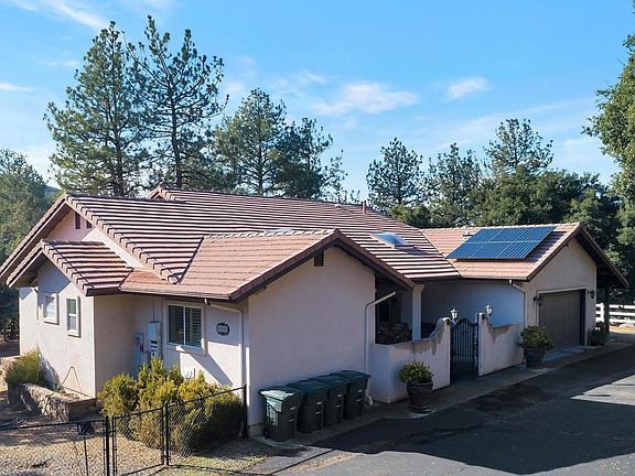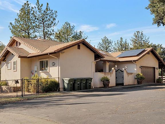 Pine Valley, California...where the horses have the right of way...Welcome home to this splendidly maintained Horse Property. It's not just a gorgeous home, it's a "Way of Life," with custom touches all over the property from the large custom composite deck on the southern side, bullnose corners on the inside, large pendulum light at the entry, modern paint, beautiful unique electrical light fixtures, and exquisite sealed stone tile flooring. This sweet modern country home is fully fenced on the southern side of the property so your horses can come right up to your deck and visit you. This spacious one-of-a-kind property has a hay barn, tack room, and horse stalls, a second detached garage plus an additional carport off of the circular driveway. Beautiful oak cabinets and granite counters grace the large chef's kitchen. Enjoy the breakfast bar for dining or sit at the dining table. Love the spacious living room for entertaining with a cozy fireplace for those chilly winter evenings. Wooden Plantation shutters are on almost every window and door for an added layer of privacy and insulation and increased energy efficiency. The primary bedroom is generously appointed with 2 en suite bathrooms with beautiful Corian counters and 2 expansive closets to store all of your seasonal clothing. The guest rooms have more than enough room for your friends to visit or will make a nice game room or office. Portions of flooring may include engineered wood or laminate. Mature oak, pine, and other native trees throughout the property make this a warm homey delight. With room to park multiple cars, trucks, RV, boat, horse trailer, and other toys so you can invite all of your guests to visit. Leased solar is $164 per month and is transferable to buyer. Smart propane connection in courtyard for barbecue. The horse statue does not convey.