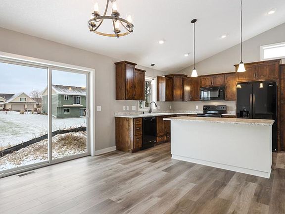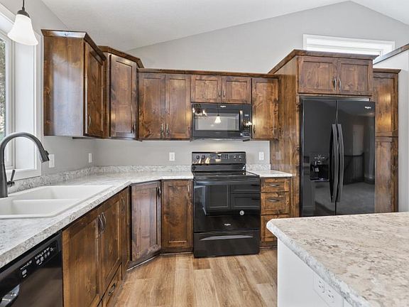 Desirable walk-out rambler offering an open layout, vaulted ceilings, exceptional kitchen w/custom Alder cabinetry and large center island, 2BR/2BA on main, master full BA w/dbl vanity, walk-in closets, modest size foyer, hardwood/plank flooring thru-out main level & a walk-out lower level offering plenty of future living space! Insulated/sheet-rocked garage w/insulated garage doors, concrete apron, sod/black dirt & more! Located in a fantastic, friendly neighborhood! Quick Close Possible!