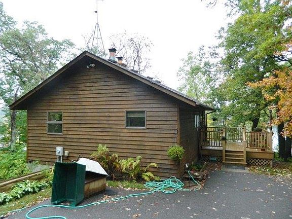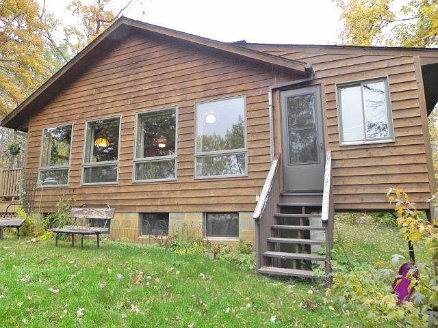 Cute 1BR/2BA cedar-sided, year-round home on Bluff Lake. Wood interior, hardwood floors, walkout basement, 2-year old roof & new propane boiler. 2 car detached garage & large 1.46 acre wooded lot with 200' of lake frontage. Great home on great lake!