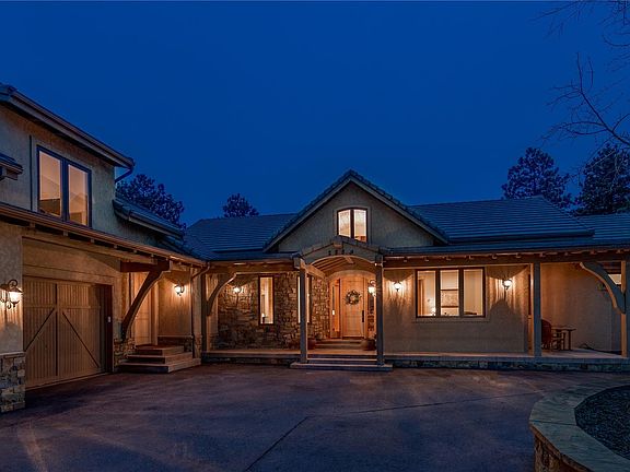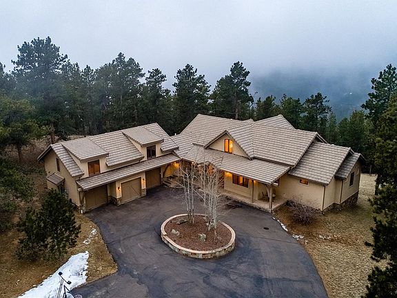 Spectacular pristine home that exudes the best in Colorado living majestic unobstructed views of Mt Evans and surrounding mountains, outstanding floorplan, ample space, tasteful appointments and gorgeous forested acreage with approximately 4 acres of flat terrain! Exclusive gated, forested and private community located within minutes on a beautiful country drive to Evergreen Parkway, I-70 and downtown Evergreen! Some of the features of the home include stunning Great Room with a picture perfect view and solid wood beams, an adjacent gourmet kitchen with high end appliances, spacious eating space surrounded with inspiring views, main floor master retreat with views and fireplace, large 5 piece master bath with over-sized jetted tub, huge walk-in closet with custom built-ins. The walk-out lower level features 3 spacious bedrooms with views private baths and walk-in closets, large family room with fireplace and bar and a wine cellar. Large bonus room over garage for play or exercise.