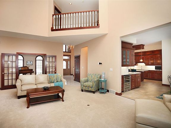This luxury all brick 2 story walk out is situated on 1.4 +/- acres at the end of a cul de sac surrounded by whispering trees. Featuring over 5,000 square feet of living space this expansive home has room for everyone! Step inside to the spacious soaring foyer, you're sure to notice the great space and light this home has to offer. The foyer opens to a front formal living room and/or office. French doors open to the great room with expansive windows. A cozy fireplace anchors the great room perfect for those brisk nights. The kitchen is the hub of the home stocked with cherry cabinetry, granite counters, tile backsplash, and up graded appliances. A built in serving area bridges the great room and kitchen. Patio doors frame the eat-in dining area and lead out on to the deck. Adjacent to the kitchen is a nicely appointed formal dining room. This versatile space is great for entertaining. Tucked behind the great room is the massive master suite complete with; fireplace, built-ins, private spa like bathroom with jetted tub, separate shower, dual vanity, walk-in closets, and a patio door to the deck. A convenient half bath and separate laundry room complete the main floor living space. The sweeping staircase from the foyer leads to the upper level balcony overlooking the great room. The upper level of this home adds a second suite with private bath and walk-in closet, as well as two additional bedrooms with adjoining bathrooms. Enhance your lifestyle with even more room for living and entertaining with the finished lower level. The quality of the finish as well as the abundance of natural light reflects the extension of the main floor. A large rec room opens to an additional family room with wood burning fireplace and patio doors bridging the outdoors in. A fifth bedroom and fourth full bathroom round out the living space. Unwind in the luxury of your own backyard; relax on the upper deck or the lower patio offering a private escape. The HUGE five car practically heated garage with stairs to the basement can accommodate all your storage needs. Exquisite both inside and out the attention to detail is obvious in the quality and craftsmanship of the beautiful home. Buy in confidence this home comes with a 1 year HMS home warranty.