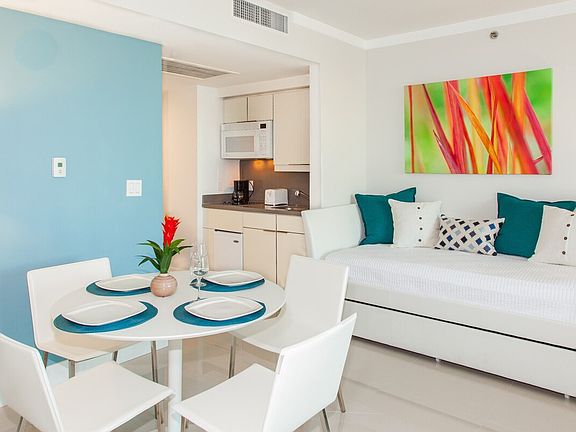 Feel at home in this elegantly furnished two-bedroom apartment located at the Arya Hotel in Coconut Grove. This unique property consists of two linked units, a 1-bedroom and a studio, each with its own independent entrance but connected, offering stunning ocean and city views. The apartment features all-ceramic floors, a fully equipped kitchen with a quartz countertop, and a spacious living room leading to two large balconies. Enjoy the convenience of two free covered parking spots in the same building. The apartment is thoughtfully designed with modern furnishings and a fully equipped kitchen featuring a refrigerator, glass stove, microwave, dishwasher, and Nespresso-type coffee maker. Each bedroom boasts its own full bath, with the master bedroom offering a king-size bed and the second bedroom equipped with two twin beds. A third full bath is also available. The living room is spacious and perfect for relaxation, with cable TVs connected to the internet for streaming services like Netflix, Hulu, or Amazon. Guests can enjoy the pool and outdoor hot tub on the 8th floor with amazing views of the bay, along with free towels provided there. The building also offers a fitness center with great views, squash courts, and a business center. Room service and dry cleaning service are available but not included in the price. Located next to the marina and ocean, this apartment offers easy access to the best of Coconut Grove. The property is ideal for executives staying close to Brickell or Coral Gables, parents visiting University of Miami students, commuters to nearby hospitals, or anyone looking to enjoy a weekend retreat by the ocean. The neighborhood is vibrant and offers plenty of attractions and amenities. The property is privately owned and located within the Arya Hotel, offering a 24-hour front desk and full access to the condo amenities. Parking is included but subject to availability. The apartment is ideal for up to 8 people, making it perfect for families or groups. The apartment provides a real high-speed internet connection at 50Mb, making it suitable for remote work. A business center is also available for guests who need additional workspace.