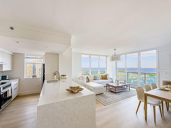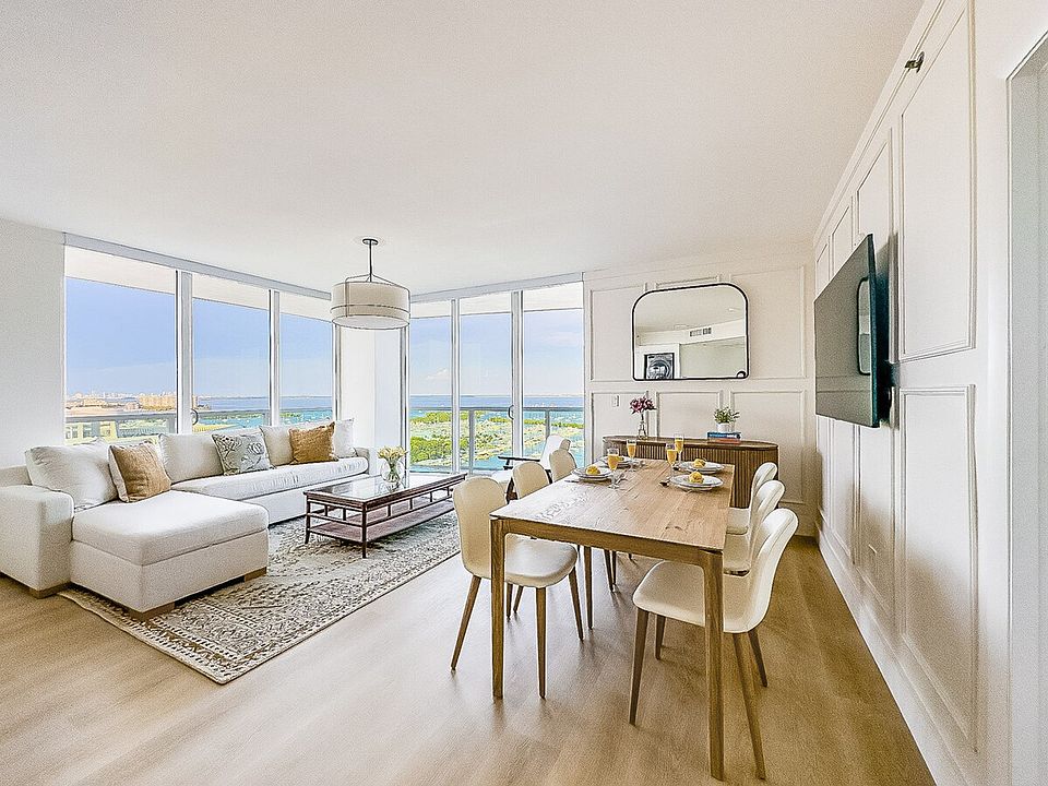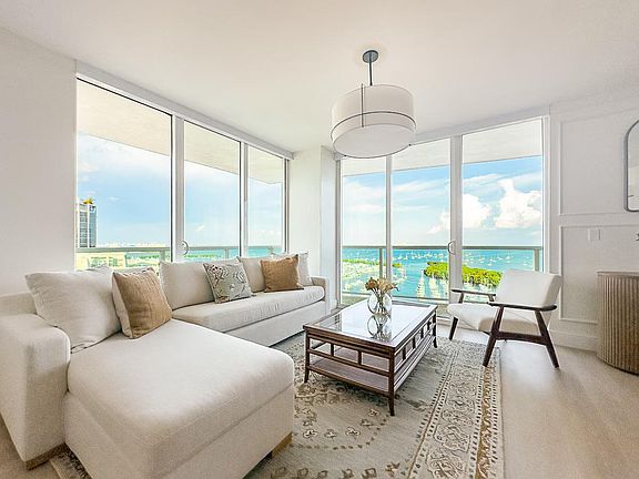 Experience the allure of Coconut Grove with this stunning condo offering ocean and breathtaking views of Biscayne Bay, Dinner and West Islands, and Dinner Key Marina through expansive windows and a wrap-around balcony. Feel at home as you relax and enjoy the unobstructed views of the bay, enveloped by soft breezes and sparkling turquoise waters. This exquisite condo provides free self-parking for your convenience. This privately owned property, located at Arya Hotel in Coconut Grove, is elegantly furnished and features a fully equipped kitchen with a refrigerator, freezer, electric stove, microwave, dishwasher, washer and dryer, toaster, and Nespresso-type coffee maker. The condo includes two en-suite bedrooms, each offering gorgeous views, king and queen-size beds, full baths, and hi-def cable TV. The spacious living room features a fold-out couch and a full dining area, surrounded by a large 'L' balcony with an outdoor dining area. High-speed Internet and cable TV with 100 channels are included. Guests can enjoy the pool and outdoor hot tub on the 8th floor with amazing views of the bay, with free pool towels provided. The Fitness Center is located on the top PH floor. Room service and dry cleaning service are available but not included in the price. The property also features squash courts and a Business Center. Hotel Arya Coconut Grove provides a 24-hour front desk, and guests have full access to the condo. The property is ideal for executives staying close to Brickell or Coral Gables, parents visiting University of Miami students, commuters to the numerous hospitals, romantic getaways, or those seeking a weekend retreat by the ocean. Guests will have full access to the condo. The building offers a 24-hour front desk for added convenience.