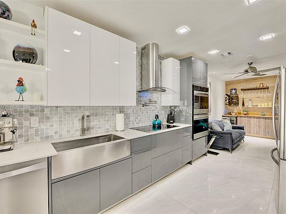 IMPECCABLY RENOVATED MODERN DESIGNER DREAM TOWNHOME. WALK INTO THE HOME'S FOYER AND YOU WILL NOTICE THE BEAUTIFUL ITALIAN PORCELAIN 48"X48" TILE RECENTLY INSTALLED. EXPERTLY DONE KITCHEN IN ITALIAN-STYLE CABINETS, DOUBLE WALL OVEN AND EXPOSED HOOD OVER COOKTOP. GARAGE CONVERTED INTO AN EXTENDED DEN/BAR/LIBRARY AREA OFF THE KITCHEN. SPACIOUS FAMILY ROOM AND DINING ROOM. UPSTAIRS PRIMARY BEDROOM IS SPACIOUS FEATURING A WALK-IN CLOSET AND BALCONY OVERLOOKING THE PATIO. RENOVATED PRIMARY BATHROOM WITH HUGE WALK-IN SHOWER. SECOND BATHROOM UPSTAIRS ALSO RECENTLY RENOVATED TO TODAY'S DESIGNER AESTHETIC. OUTDOOR PATIO WITH PERGOLA OFFERS A SERENE RETREAT & ENTERTAINING AREA. HURRICANE IMPACT WINDOWS & DOORS. TWO CAR DRIVEWAY & PLENTY OF GUEST PARKING IN FRONT. OK TO LEASE.