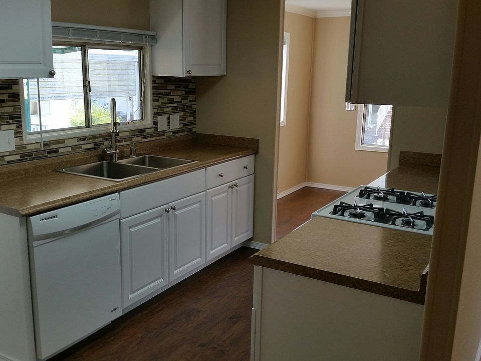 Newly remodeled home located at HideAway Lakes Mobile Estates - a 55+ community. New paint - remodeled bath (new vanity & shower enclosure) & kitchen (new cabinets, flooring, counter tops, dishwasher). Each bedroom has large walk in closets. Large patio and back yard. Gated community has community swimming pool, library, exercise & billard room, and clubhouse and kitchen.