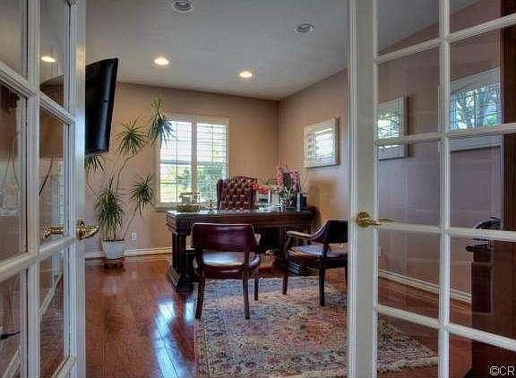Welcome to your beautiful 4 bedroom and very rare 2 offices, one down and one upstairs; fantastic for todays' "work from home" concept. Each bedroom has it's own bath, all upgraded. Downstairs you'll be welcomed with wood floors throughout, except the main floor bedroom! That's right, there is an office and a bedroom downstairs which has brand new carpeting and overlooks the backyard. Huge Master bedroom upstairs enjoys wood floors and a beautifully upgraded En-Suite with tub, shower, and a huge walk in closet. Spacious formal Living and dining rooms offer a 2 story ceiling, overlook the yard and the views, and boast a cozy double sided fireplace that extends to the family room behind. Huge and spacious kitchen enjoys ample cabinetry, granite counter tops and a large square island with sink and great for informal eating. House and the garage have new paint. Back yard has several fruit trees, a cozy fire pit and a bar-b-q with bar and seating, fantastic for entertaining your friends and family. This home is situated in the coveted Hilecrest Estates guard gated community. Close to walking and biking trails, shops and restaurants, Blue Ribbon schools, movie theaters and the famous California Riviera Beaches. You would not want to miss this one of a kind home.