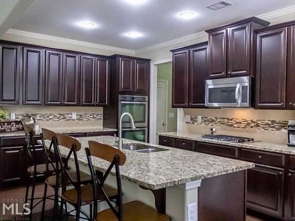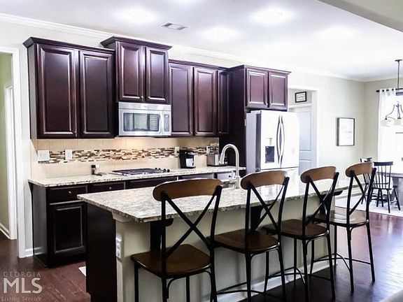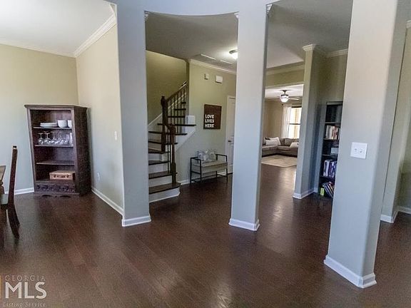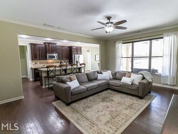 Stunning 2 Story in Bakers Farm w/ Master on the Main! Hardwood floors throughout main level. Round 2 story foyer , Gourmet Kitchen with eating area granite counter tops, oversized island, stainless steel appliances, double oven, gas cook top designed tile black splash. Master features large shower with jetted tub, oversized closet with custom built-ins. formal dining room, upstairs features oversized loft area, media room and 3 additional bedrooms, office/flex space 2 full baths. Covered rear patio looks out over large fenced in back yard. Recently painted exterior/interior Must see!!
