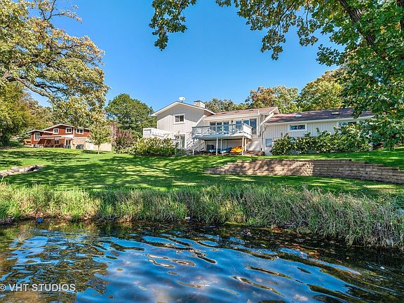 VERY VERY RARE OPPORTUNITY to make this beautifully updated and move-in ready HOME ON A PEACEFUL LAKE your own. Pictures don't lie...this Loch Lomond quad-level has one of the most AMAZING VIEWS. Be awestruck as your enter this lake house, via semi-circular drive, into the GREAT ROOM with OPEN FLOOR PLAN, a wall of windows and 2 skylight bringing in as much of the lake setting inside. Open kitchen is highlighted by Beech Wood 42" cabinets, granite counters, two-tier island with pub-height seating and large pantry. HARDWOOD FLOORS throughout main and bedroom level; all 3 FULL BATHROOMS have been updated. Don't miss some of the unique features - WALK-OUT family has access to the attached GREEN HOUSE and LOWER DECK. TWO FINISHED BONUS/STORAGE SPACES with skylight can be found behind 3 car attached garage. A few steps down from family room is another large finished space featuring a REC ROOM, LAUNDRY area and utility room. This level ALSO has WALK-OUT access to outside and garage. 100 FEET OF LEVEL WATER FRONTAGE with dock to fish or launch your boat, canoe or kayak. Loch Lomond is a private lake with 2 MEMBERS-ONLY BEACHES. This LAKE COMMUNITY is located close to everything including Park District WATER/SPRAY PARK and Fitness Center, Library, Shopping, Schools and METRA. Visit Mundelein High School and be impressed in their new STEM addition.