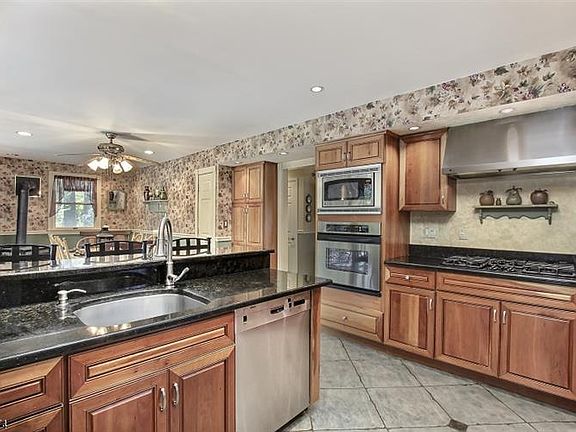 Great opportunity to own home in Long Valley! Stunning kitchen features granite counters, cherry cabinets, SS appliances, and recessed lighting. Freestanding wood burning stove great for chilly nights. Step out of your sliders of kitchen to large deck w open level backyard. Deck features electric awning great for shade on the super sunny days. Living room with hardwood floors, chair rail molding, and recessed lighting. MBR with vaulted ceilings, walk in closet and master bath featuring double sink, jetted tub and separate stall shower. Partially finished basement great for office or playroom.