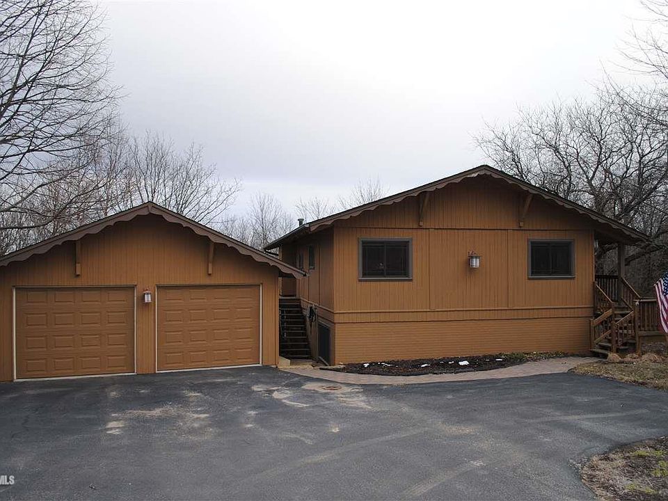 Rustic Elegance" in this 3 bedroom, 2 bath remodeled home. The current seller has made many improvements to the home such as building a 2-car oversized garage in 2003, kitchen remodeled with cabinets and granite counter tops, added a wood burning fireplace with built-in book cases on either side, updated light fixtures, and updated bathrooms in 2017. The "great room" is an open concept and boasts beautiful exposed beams as well as large windows letting plenty of natural light in which the current seller added! Step outside onto the large, covered deck and enjoy the beautiful prairie grasses and flowers below in the back yard. The two main floor bedrooms are currently used as offices but offer ample space. The walk-out, lower level offers a large family room, one bedroom, and one non-conforming bedroom/den and a newly remodeled bathroom. Seller plans to leave some items of personal property with the sale. HSA Home Warranty plan offered to the buyer for 1 year from closing date. Property may be subject to GTA document transfer fee. Covenants & Restrictions Apply. Taxes based on HEL and HES.