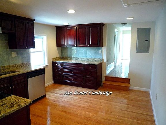 True four-bedroom two-level apartment second and third floor, with eat-in kitchen, separate living room, and two full baths. Fantastic location!! Large patio/yard and two car parking. Spacious living room and eat-in kitchen. This beautiful sunlit apartment. Minute to Redline, Central, Harvard, and MIT. Fully applianced kitchen with cherry cabinets and stainless appliances. -Patio area in the backyard. -Laundry on site. 200 for a third additional car parking.
