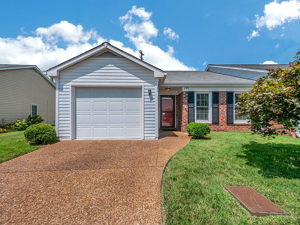 Welcome to 289 Cana Circle—an inviting 2-bedroom, 2-bath, 1,258 sq ft garden condo offering easy one-level living in the desirable 55+ community of The Cloister at St. Henry. This well-maintained home features classic parquet floors, an updated kitchen with granite countertops and stainless steel appliances, and a full-size washer and dryer. The spacious primary suite includes a walk-in tub for added comfort and accessibility. Enjoy a level lot with a private patio, attached garage, and walkable sidewalks throughout the community. Residents have access to a clubhouse, pool, and planned social activities. The monthly HOA fee includes basic cable TV, mowing, exterior maintenance, and trash pickup—making for a truly low-maintenance lifestyle in a prime Belle Meade location.