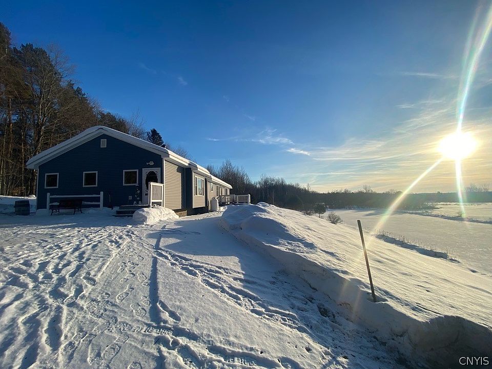 Updated 3 bedroom, 2 full bath ranch sitting on 11.5 acres in the town of Redfield. This home overlooks a beautiful fully stocked pond with spectacular views from your back deck! Updates include new siding, windows and roof, new deck with composite wood, radiant heat, brand new drilled well, walk in pantry along with brand new addition to add another family/sitting room. Outside is loaded with landscaping and fruit bushes- raspberries, strawberries, blueberries and grapes! For all you outdoor enthusiasts, this property borders stateland, hop on the snowmobile trail right behind the property. Salmon River reservoir is 4 miles away for all your fishing, kayaking, boating and swimming. The reservoir has a free DEC boat launch for easy access. Also near by are the Salmon River Waterfalls. Everything right in your backyard!