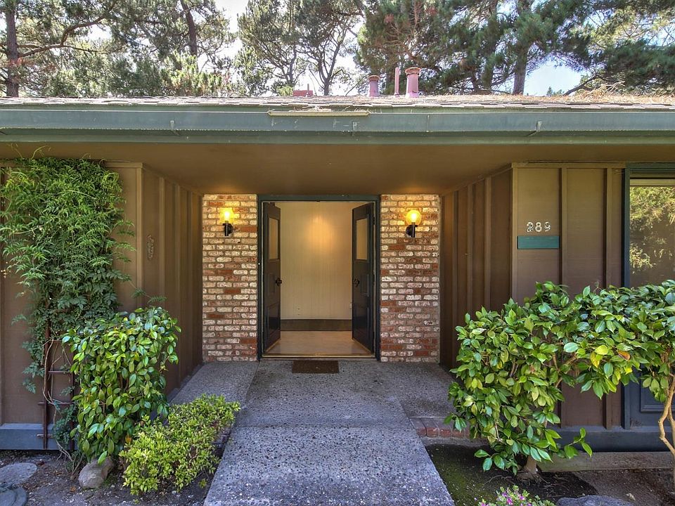 Desirable Plan B unit 2 bedroom 2 bath with an office/den. Beautiful built in shelving units in the office, single story with forest views. Solid surface counter tops, built in Refrigerator. Washer and Dryer on the deck storage unit. This is a great place to retire!