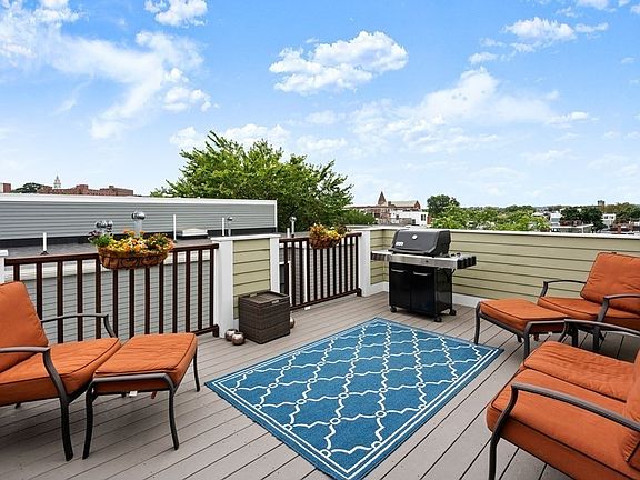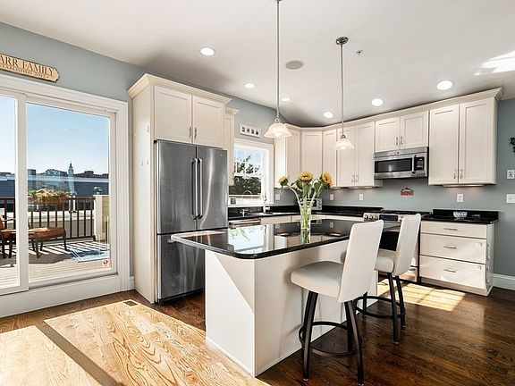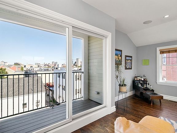 Flooded with light from exposures on all four sides, this 3 bed, 2.5 bath penthouse duplex offers a luxurious floor plan that is hard to find in today's market! Vaulted ceilings and two sets of sliding glass doors give this entertaining space a bright and airy feel. The forward terrace offers panoramic, sunset views of Back Bay while the rear, walk-out deck boasts ~250 sf of additional private outdoor space. The white custom kitchen has breakfast bar seating, large island, gas cooking and excellent storage. A gas fireplace is a perfect focal point of this incredible living area. Conveniently, the three spacious bedrooms are all on the same floor. The master suite has two closets, space for a king bed and a large master en-suite with double vanities and glass walk-in shower. The second bedroom also has city views & a double closet. WFH, Peloton, guest room or nursery all fit easily in the 3rd bed. There is a large parking space, extra storage, central air - all on the red hot West Side!